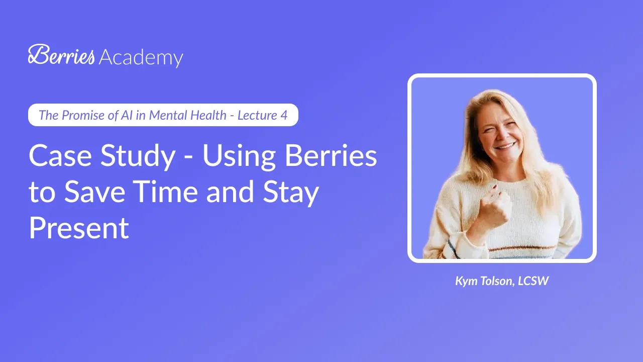 In this fourth lecture, Kym Tolson moves from conversation to demonstration, showing mental health professionals exactly what AI-powered documentation looks like in a real clinical workflow. Using Berries as a live case study, she walks through recording a session, generating a note, suggesting diagnoses with justification, building a treatment plan, and drafting client letters, all within minutes.
