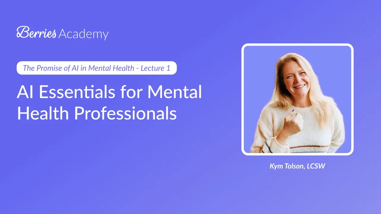 Berries Academy is a professional learning space built exclusively for mental health clinicians. We offer practical, ethics-grounded courses on AI, technology, and clinical workflows. Learn how to work smarter, stay present, and build a practice that's truly sustainable, all so you can have more time for what you love.